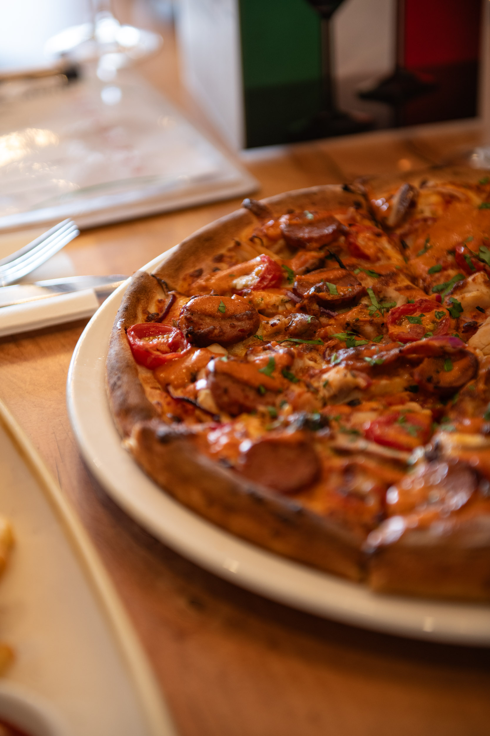 We provide a continuous service of all you can eat woodfired pizza until everyone is full.